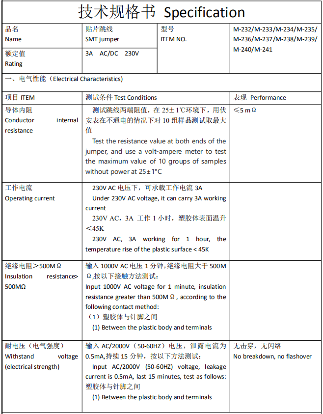 | 耐电压(电气强度) Withstand voltage (electrical strength) |