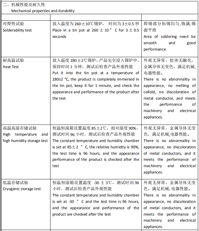 | 项目ITEM | 测试条件Test Conditions | 表现 Performance |